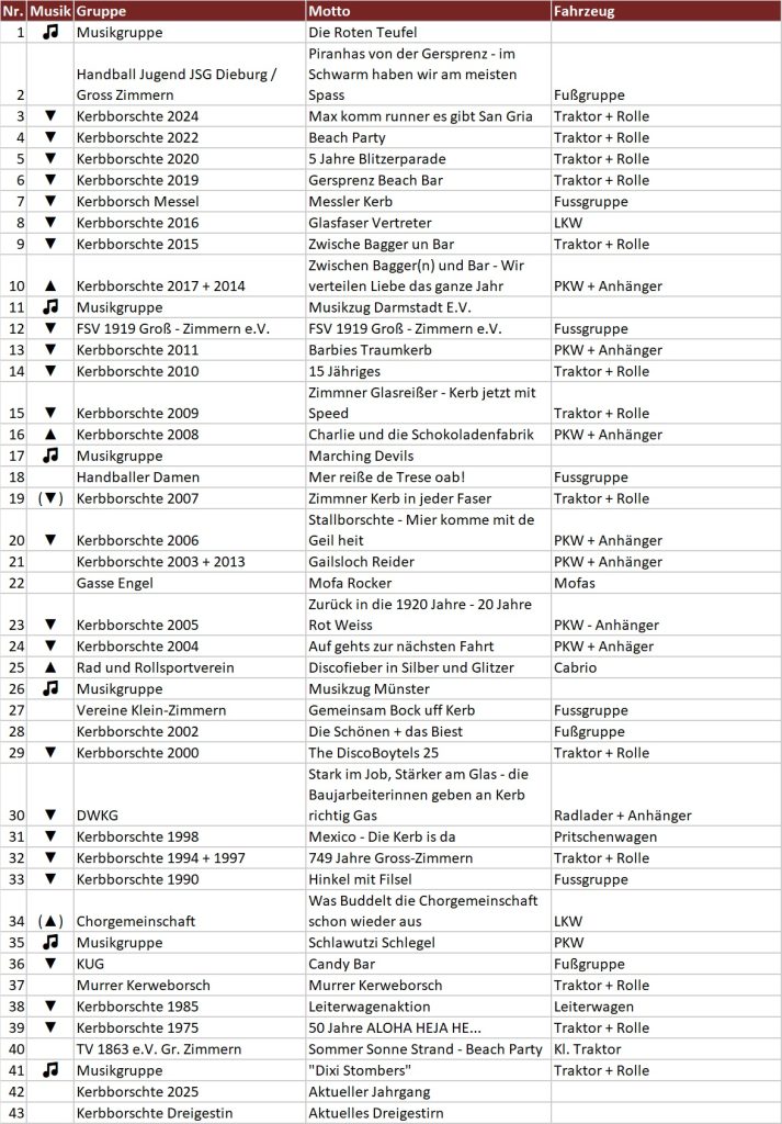 Dieses Jahr ist für uns etwas ganz Besonderes, denn der Kerbverein feiert sein 45-jähriges Bestehen. 45 Jahre, in denen viele engagierte Zimmner Männer und Frauen sich für den Erhalt unserer Kirchweih einsetzten und noch einsetzen. Voller Stolz blicken wir als Vorsitzende auf den Neuen Jahrgang, der mit viel Herzblut zusammen mit dem Kerbverein ein abwechslungsreiches und stimmungsvolles Programm auf die Beine gestellt hat. Nach monatelanger Vorbereitung freuen wir uns riesig, mit euch ein unvergessliches Fest zu erleben!